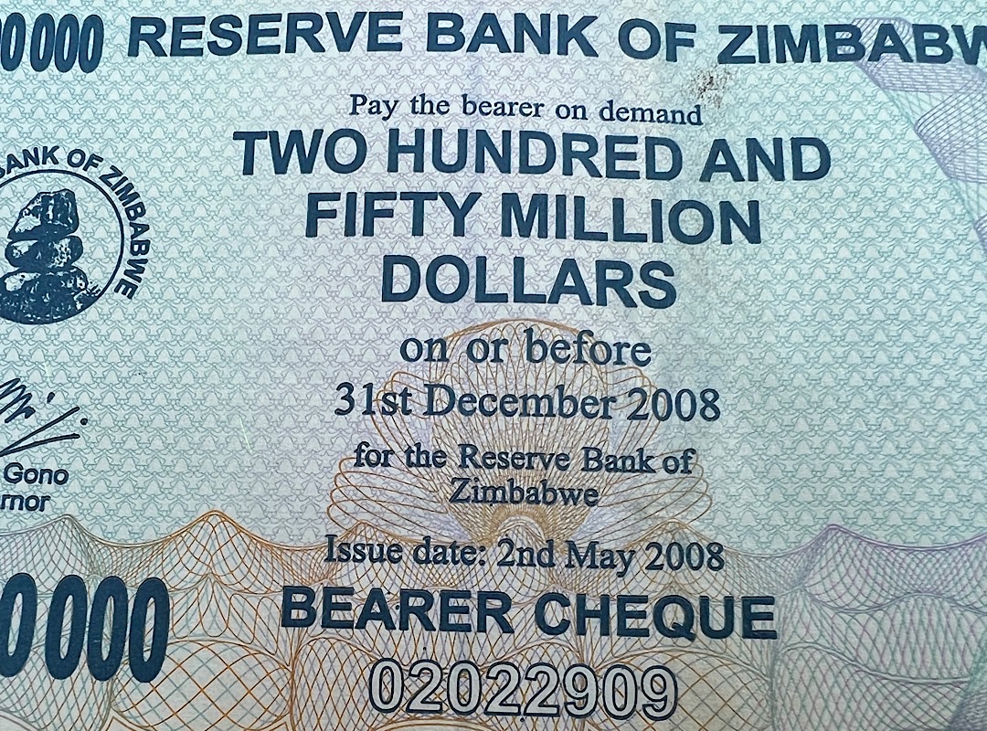 Look at the detail. It says "Pay the bearer on demand 250 Million Dollars on or before 31st December 2008 for the Reserve Bank of Zimbabwe. Issue date: 2nd May 2008". It's money with an expiry date!