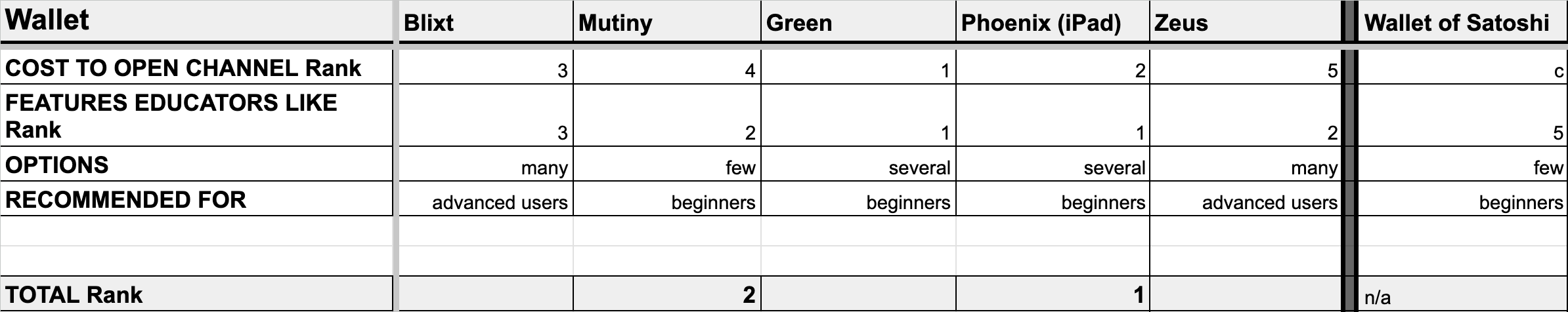 Overall Rankings for Lightning Self-Custody