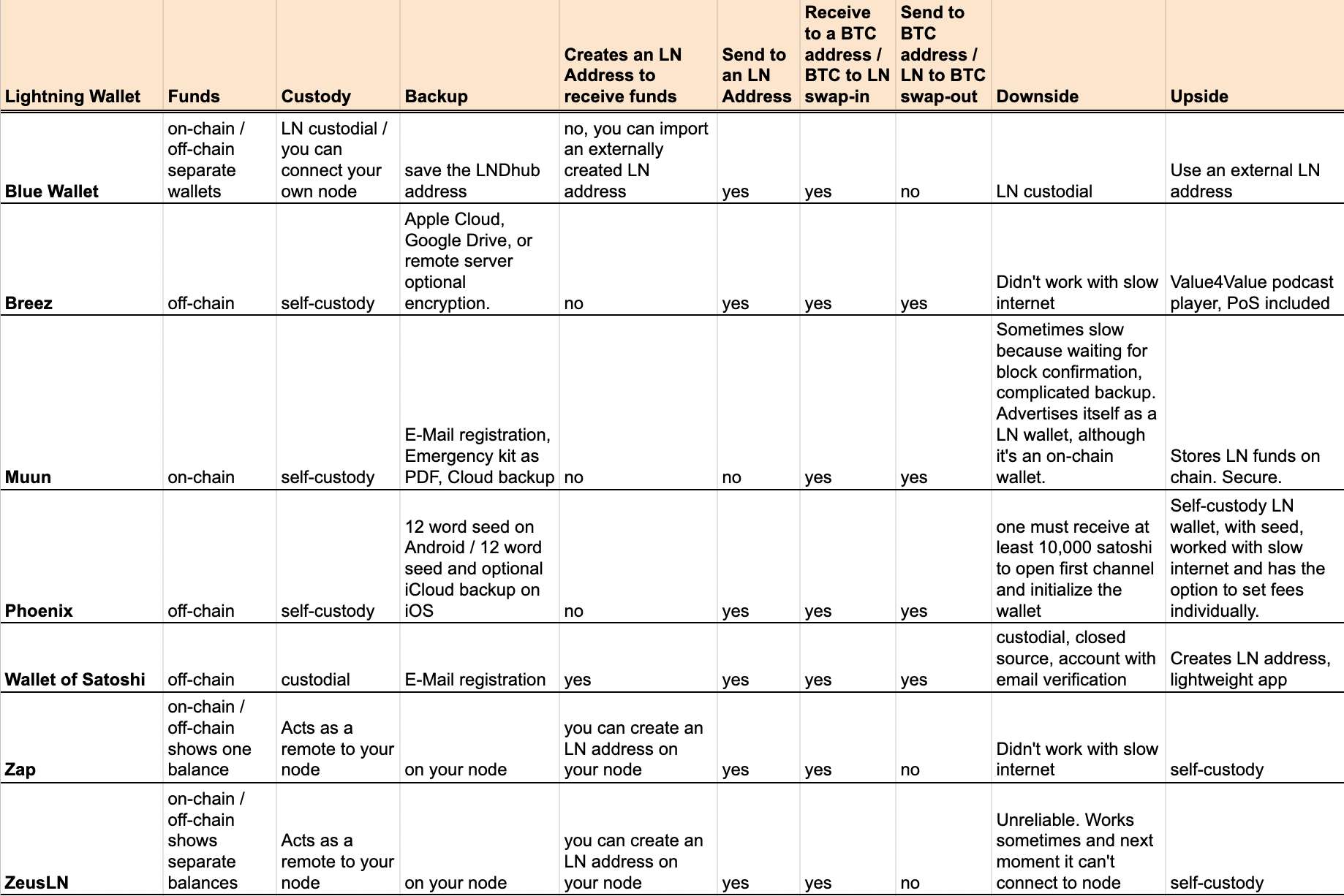 it is really difficult to make a fee comparison, because the functionalities under the hood of the wallets are different. The uncertainty of the underlying fees on the Bitcoin blockchain factor in as well, because when a channel is being opened or a swap-out to a Bitcoin address happens, they have to be paid for too.
