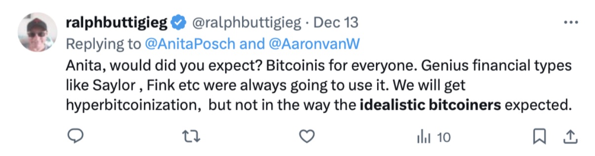 Guess what, Satoshi Nakamoto was the first and most idealistic Bitcoiner! Let that spirit come to new life in 2025.